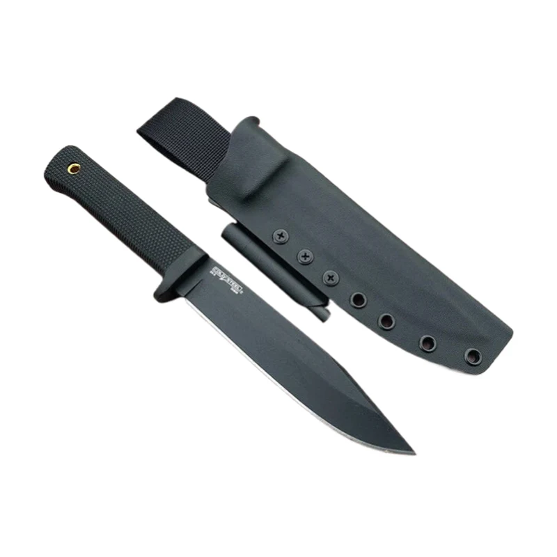 Pochva na pásový nůž je k dispozici ve tvaru taco (očka na jedné straně) a tvaru palačinky (očka na obou stranách). Pro připevnění Cold Steel na opasek klasickým způsobem horizontálně nebo vertikálně mí zákazníci většinou volí Multi-Lok. Pokud chcete nůž nosit o něco níže, doporučuji nylonový řemínek s držákem Kydex. Suchý zip je vhodný i pro nošení nože přes opasek. Suchý zip je také praktickým řešením pro připevnění nože k popruhu batohu. Ke Kydexové pochvě mohu připevnit držák z požární oceli, volitelně s požární ocelí (délka 80 mm).