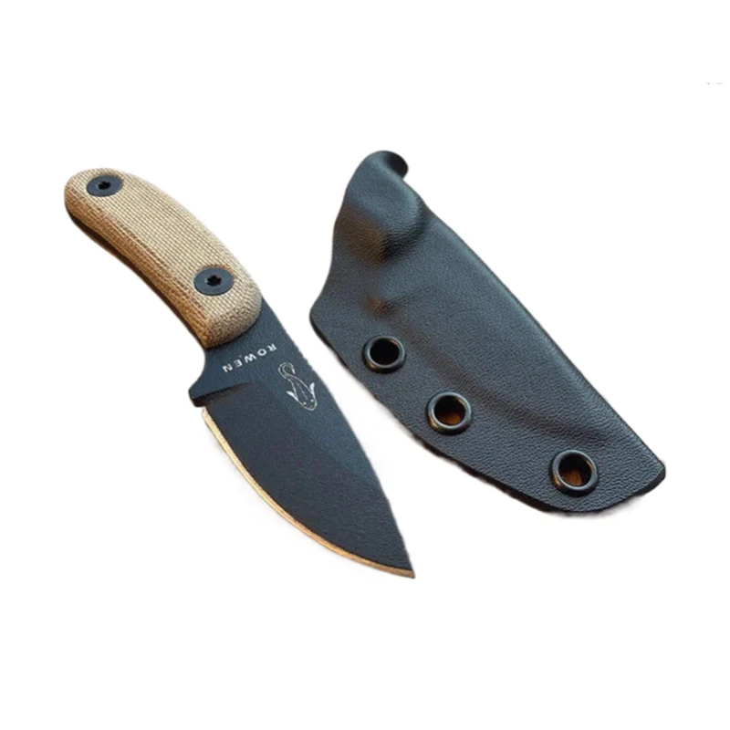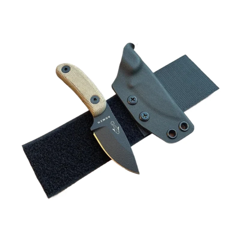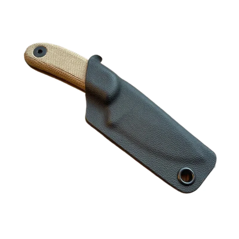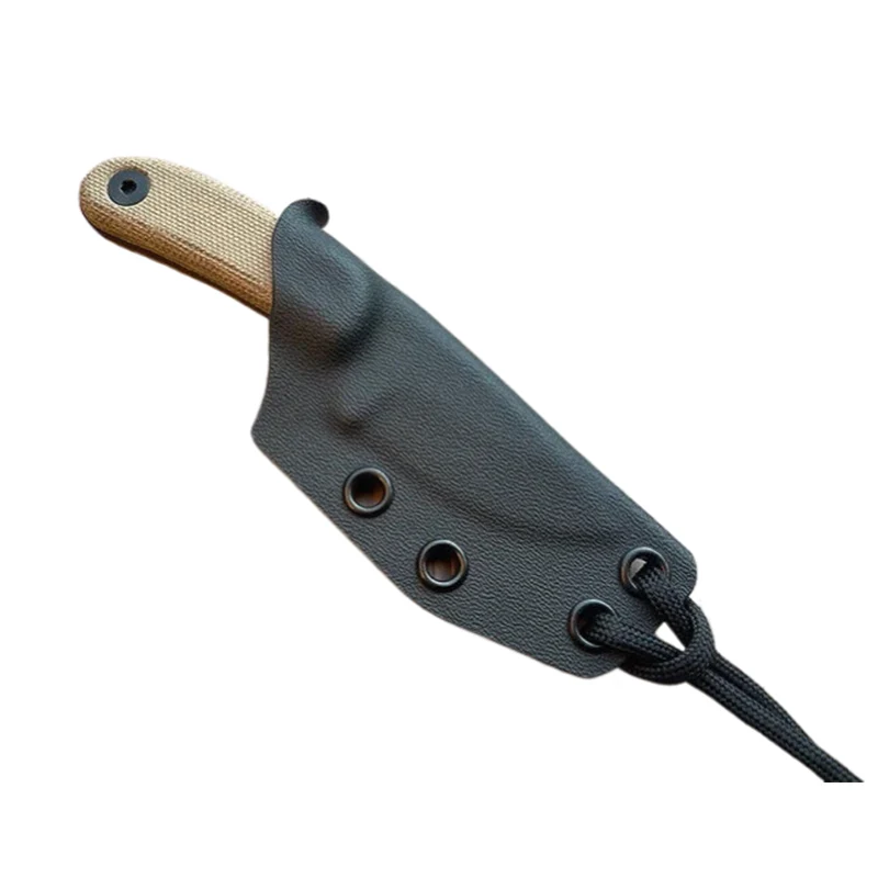 Minimalistické pouzdro na opasek pro lehký lovecký nůž. Kydexové pouzdro je k dispozici v černém Kydexu. Kydexovou pochvu vyrábím standardně se třemi očky. Pokud potřebujete více nebo méně, můžete to specifikovat během procesu objednávky. V zásadě malý nůž také bezpečně sedí pouze s jedním očkem. Chcete-li jej nosit na krku jako nůž na krk, doporučuje se na hrot připevnit dvě očka. Pokud váš nůž nemá měřítko rukojeti, uveďte to prosím při objednávce.