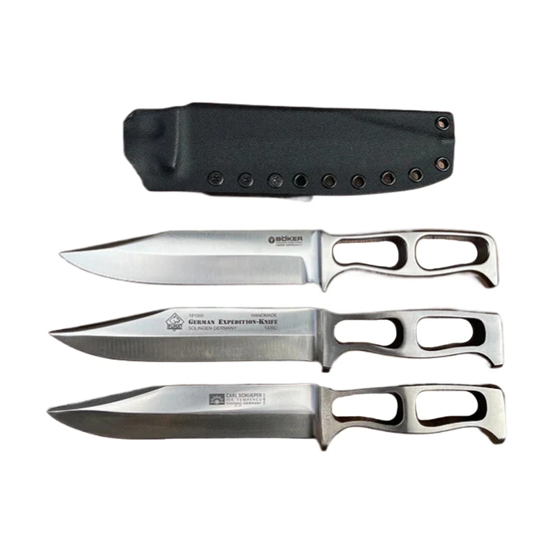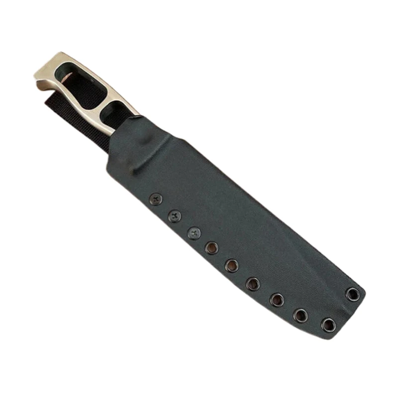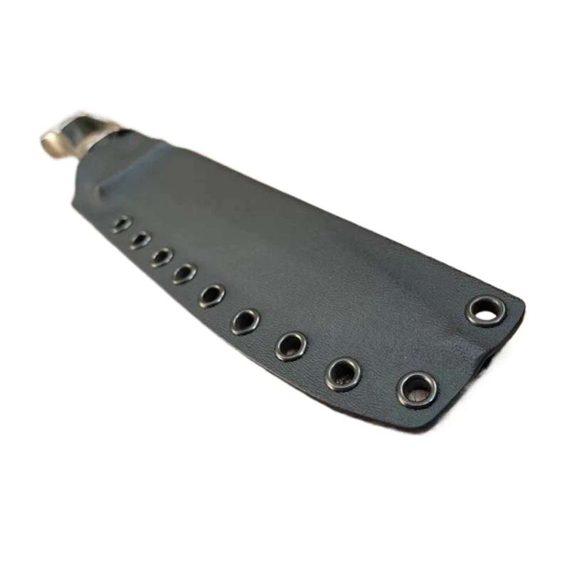 Kydexové pouzdro na kempingový nůž. Kydexové pouzdro je k dispozici s očky na jedné straně a očky na obou stranách.