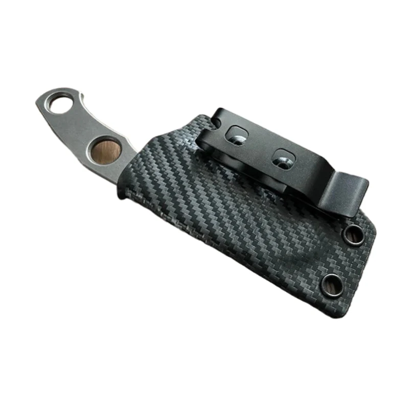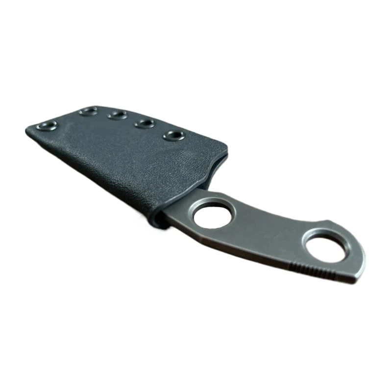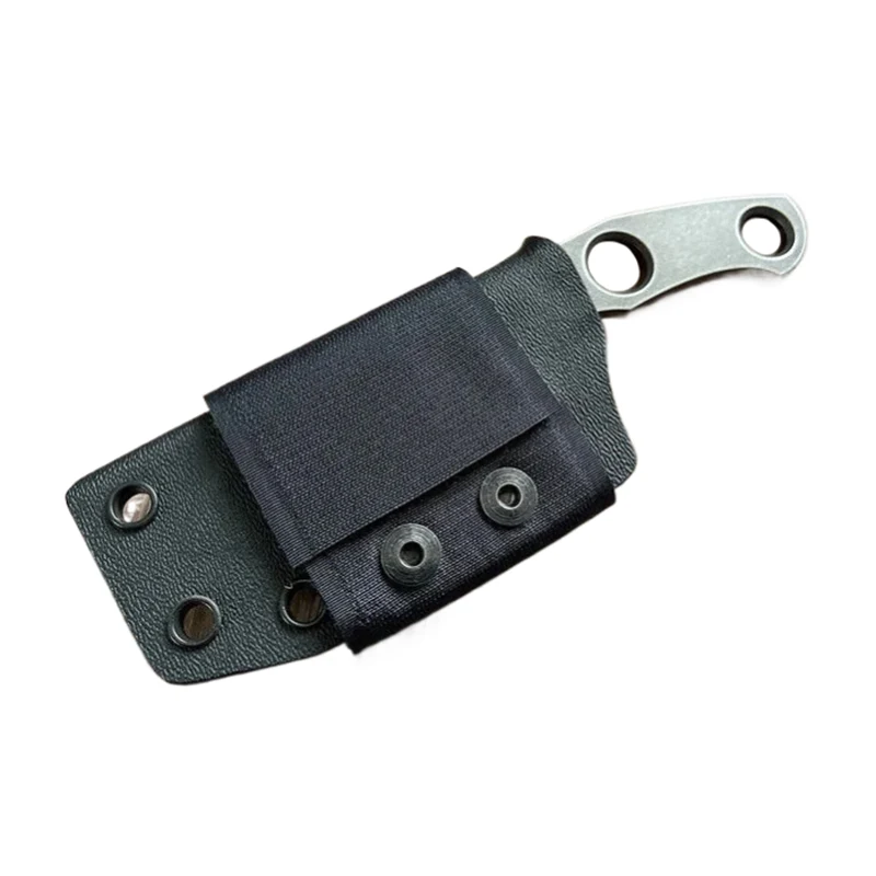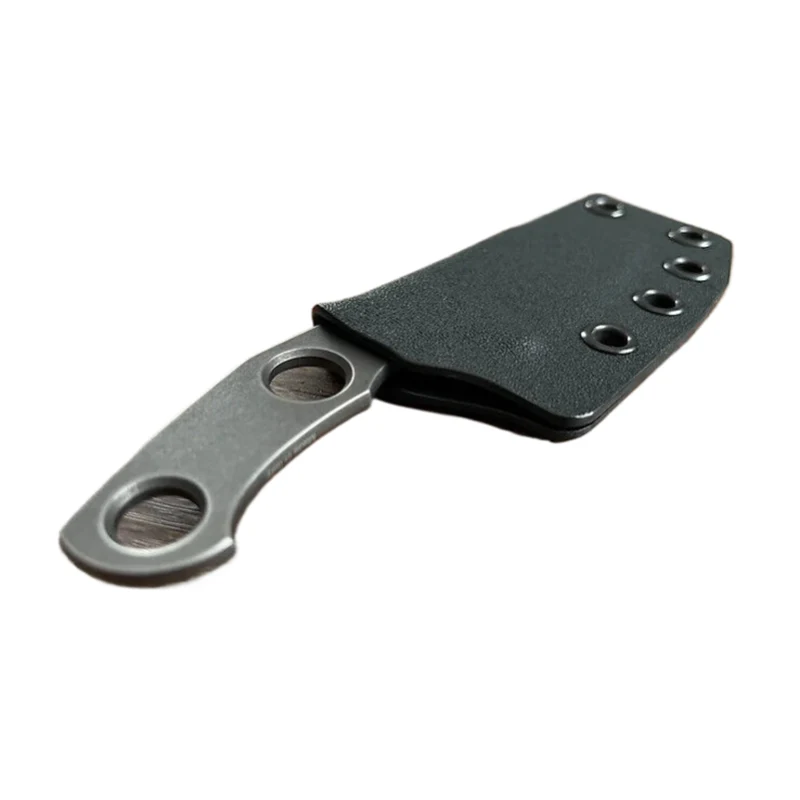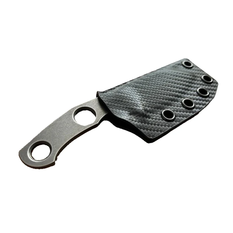 Na špičce kydexové pochvy mám připevněna dvě očka, aby se lehký nůž dal nosit i nenápadně na krku (nákrčník).